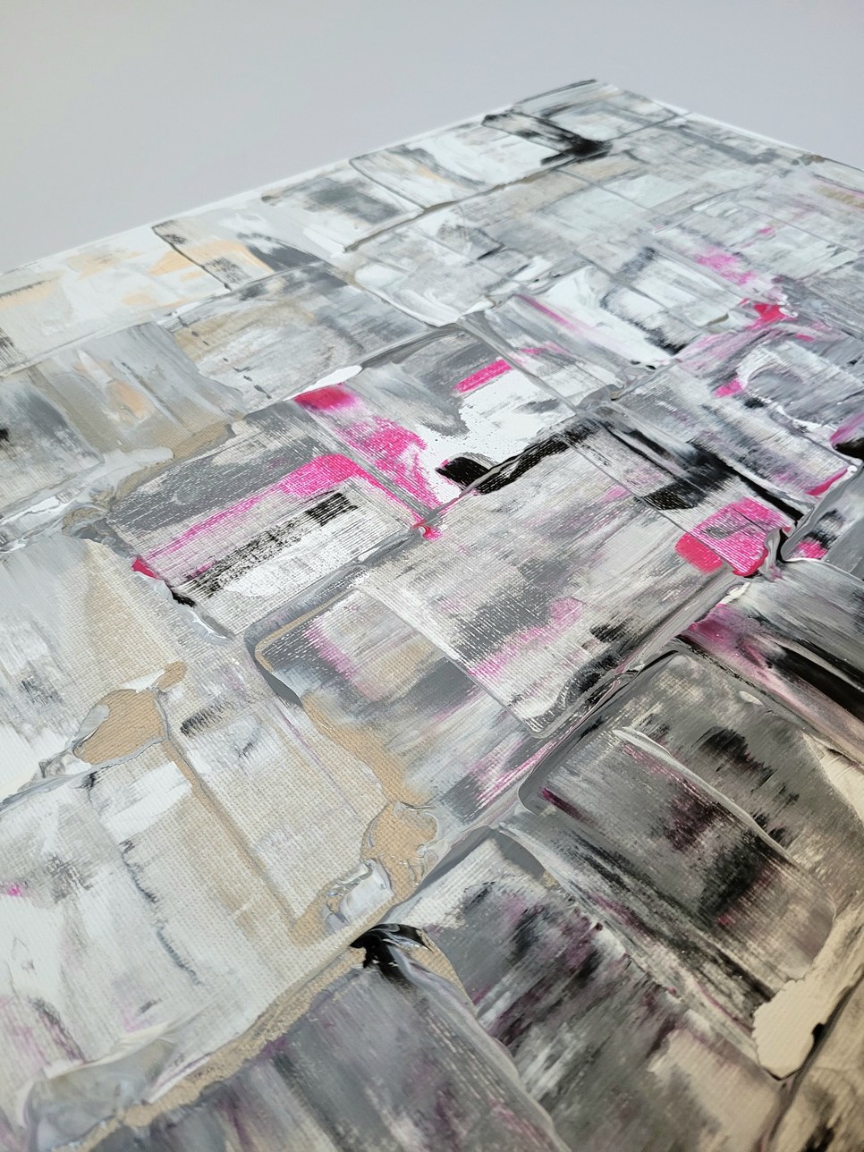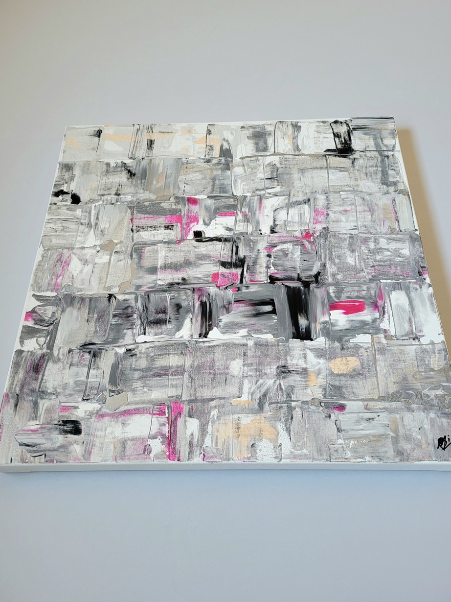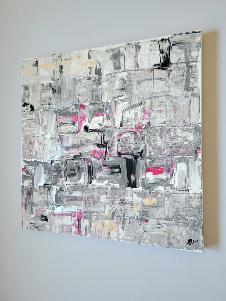 Dieses abstrakte Acrylbild auf Leinwand fängt diese Schnittpunkte ein – die Grenzflächen, die in der