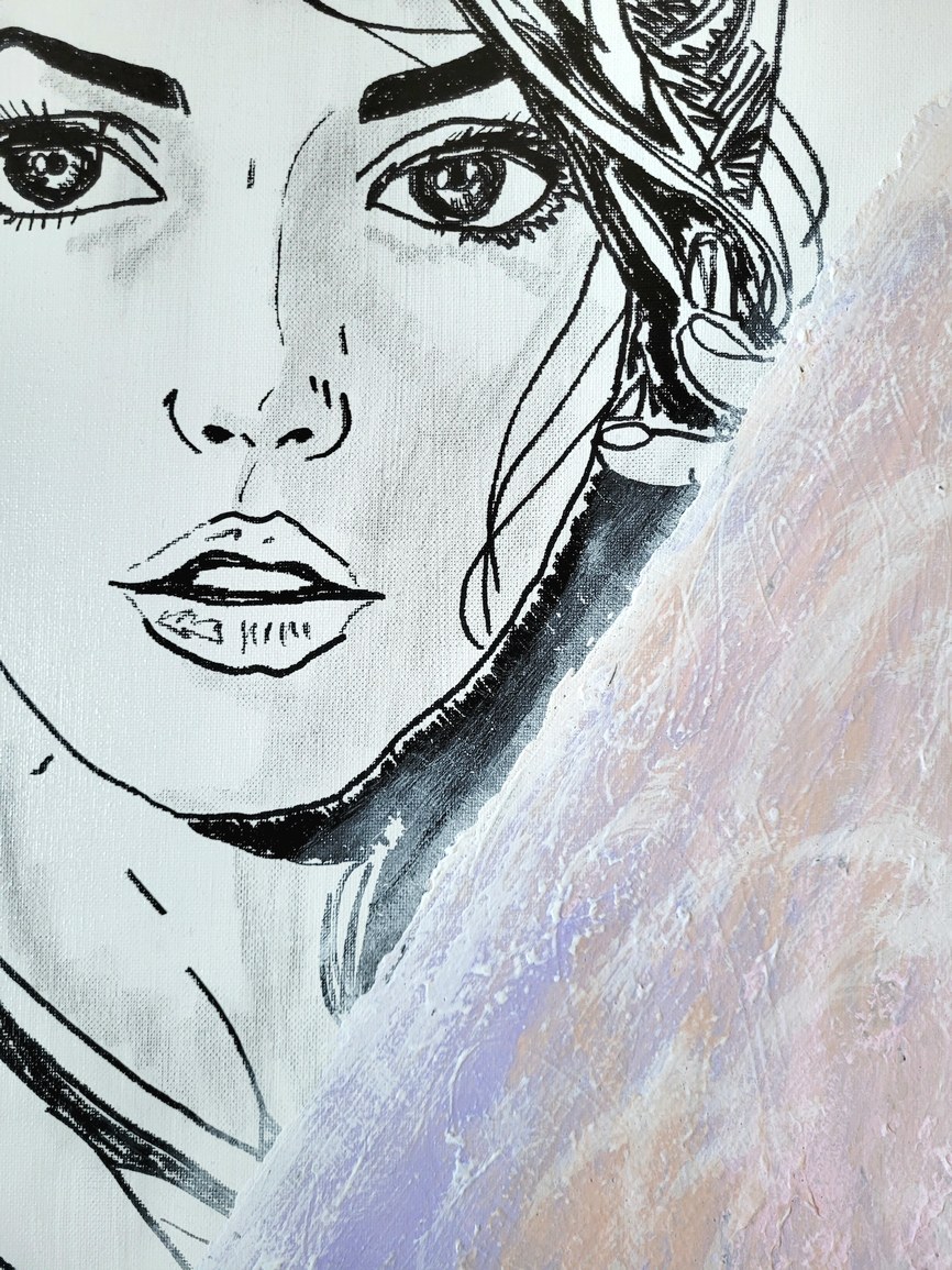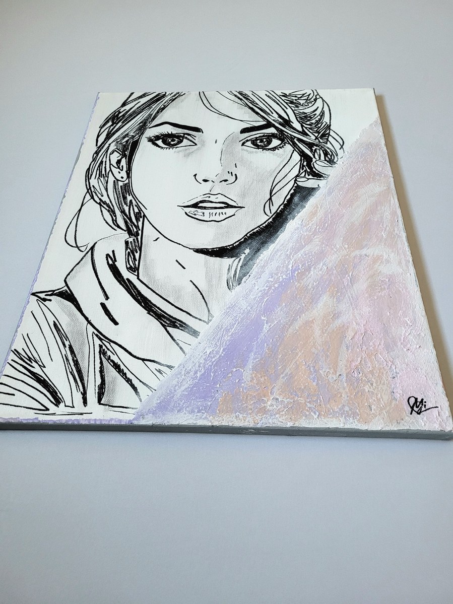 Ein ausdrucksstarkes und modernes Porträt in Acryl auf Leinwand. Still und konzentriert